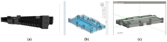 The sequences followed to perform the energy modelling. (a) Establish the model in Revit; (b) export the model in gbXML format; (c) import the gbXML file in Design Builder.