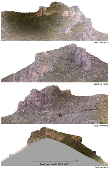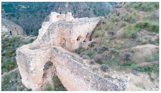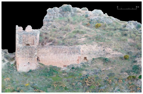 2]. However, the building is partially ruined and neglected. Despite its severe damage, local media and regional tourism groups are promoting this fortress as one of the most relevant medieval places of the area, stressing erroneous and imprecise facts coming from several Romantic nineteenth-century legends. Since the first time we visited this military emplacement, we realised that it was being misunderstood, as the descriptions presented in the legends did not fit with the size and characteristics of the current remains. Based on our professional experience, we know that the conservation and sustainability of architectural heritage must be based on detailed data. In this paper, we are offering a more precise approximation for that medieval building to both facilitate a better future interpretation of it and provide a good framework for future desirable restorations. Among the results, we are presenting, for the first time, orthorectified plans and elevations of the castle obtained through photos taken with an unmanned aerial vehicle (UAV) or drone. We have also drawn a hypothetical view of its walls, which were built around 1500–1502, as an adaptation to early modern artillery.