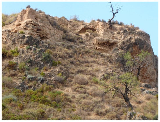 Figure 1). It is located at the foot of the Sierra Nevada Mountains, 738 m.a.s.l., and close to the nearby Torrente River. Its name comes from the Arabic toponym
