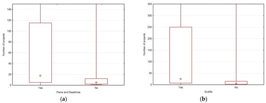 Relation of the number of implemented projects to the Plans and Deadlines (a) Quality (b).