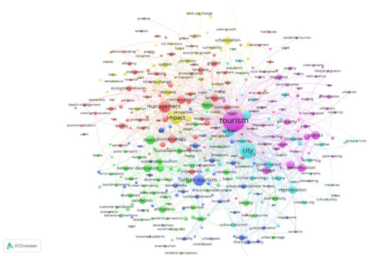 The last cluster that emerges in green is deals with urban planning and governance in urban tourism research, especially the impact of cultural tourism.