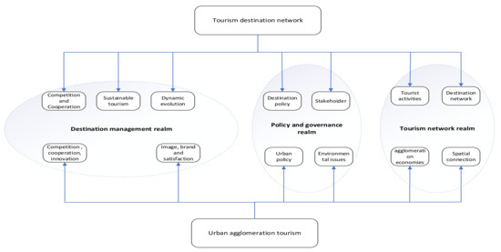 It can be inferred from the previous study that urban agglomeration tourism and tourism destination network deal with individual research objectives. Nevertheless, there are overlaps, and connections and it is plausible to summarize them into three research realms namely: (1) destination management, (2) policy and governance, and (3) tourism networks.