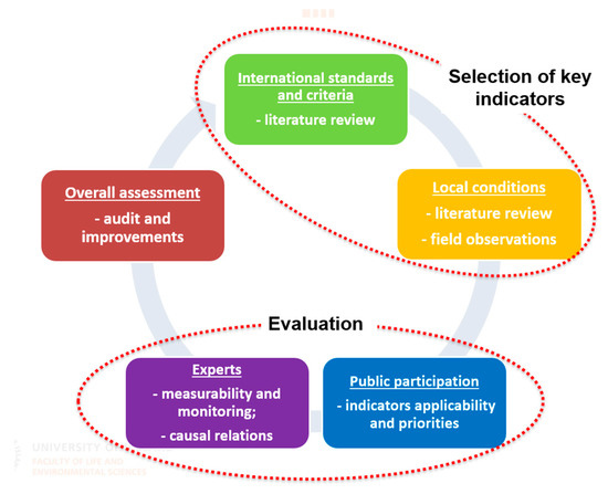 - Selection of sustainability indicators based on a literature review on international standards and criteria;