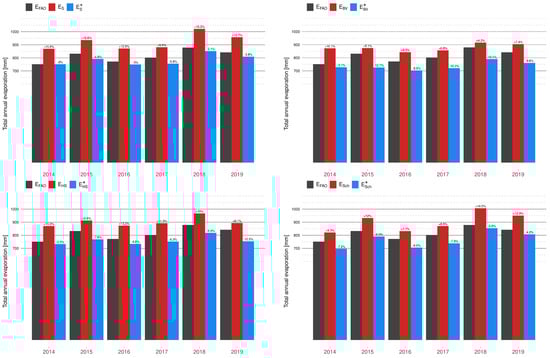 Evaporation in the years 2014–2019 computed using the calibrated models presented in this paper.