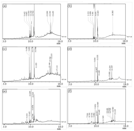 3.3. GC–MS Analysis of Aquatic Plants before and after Phytoremediation