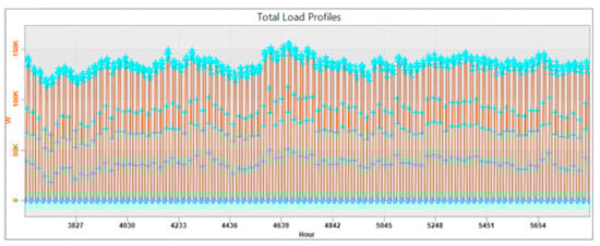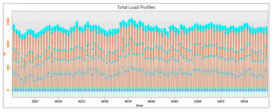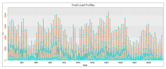 An evaluation of the variation of the total load profile is presented in Figure 18 and Figure 19. The future predicted climate variation of the 2080s clearly shows a high upsurge in the cooling load as compared to the current weather data.