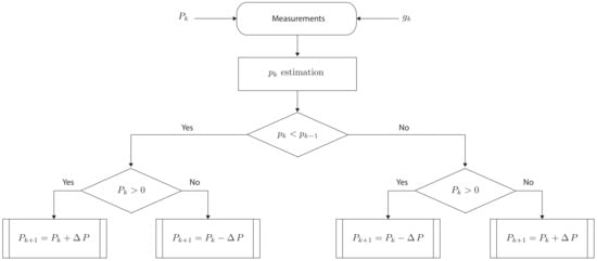 Perturb and Observe optimization strategy algorithm flow diagram.