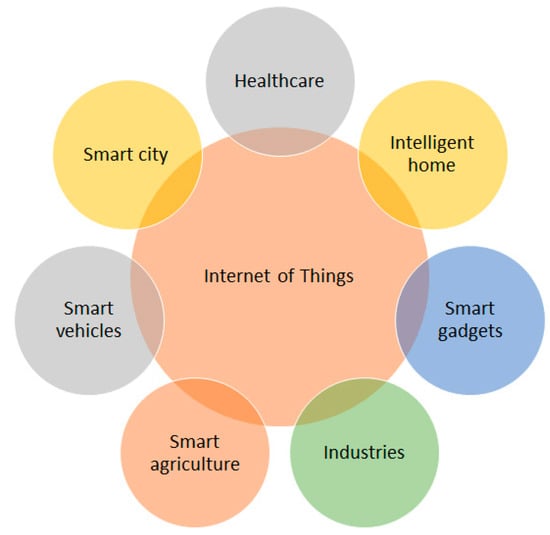 - Hassan, R.; Qamar, F.; Hasan, M.K.; Aman, A.H.M.; Ahmed, A.S. Internet of Things and Its Applications: A Comprehensive Survey. Symmetry 2020, 12, 1674. [Google Scholar] [CrossRef]