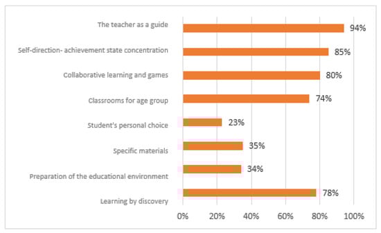 Regarding the students’ personal choice, the teachers argued that primary school children are not yet ready to manage their decisions, work time, or learning objectives. In this case, the last foundation, with a lower percentage of relevance considered by the teachers, would be an important aspect to deal with in the training, since the teachers who were not familiar with Montessori principles did not usually work with a high degree of autonomy in the training–learning processes, as in this method.