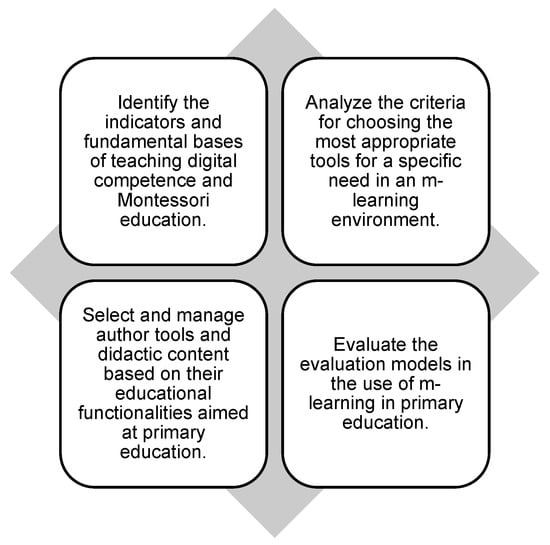 To carry out the study that is described in this article, a mixed methodological perspective (quantitative–qualitative) was adopted to meet the proposed objective: to analyze the perceptions of teachers from 15 countries about their digital competences for working with m-learning using a sustainable Montessori approach in primary education (level of education predominantly attended by students between 6 and 11 years old).
