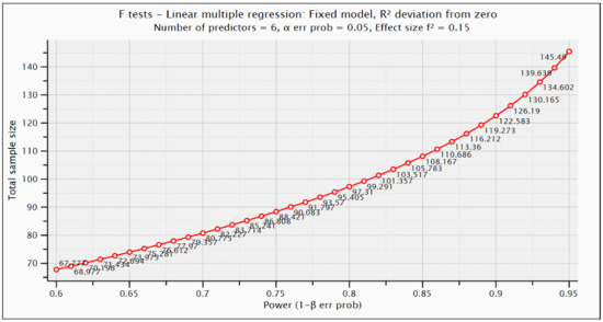 - Faul, F.; Erdfelder, E.; Buchner, A.; Lang, A.-G. Statistical power analyses using G* Power 3.1: Tests for correlation and regression analyses. Behav. Res. Methods 2009, 41, 1149–1160. [Google Scholar] [CrossRef]