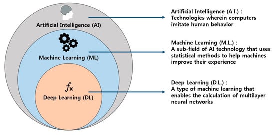 Shaikh [23] defined deep learning as “a certain kind of machine learning that represents the world in an overlaid layer structure, each layer is defined as a simple concept, and each concept that is not abstract, is calculated as a whole and learned in abstract expression, achieving great power and flexibility.” Deep learning enables actual applications of machine learning where various tasks are restricted [19].