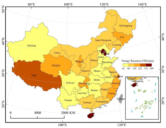 Shaanxi, Hubei, Sichuan, Yunnan, Guangxi, Guangdong, Hainan, and Zhejiang provinces provided a high level of EI rate. In absolute terms, these provincial and urban rating values are also higher than the national average. These provinces are from the central and western regions. Furthermore, the usage of environmentally friendly new energy sources such as solar energy and geothermal energy improves the eco-efficiency of provinces. For example, in the three northern regions (northeast, north, and northwest) with abundant wind energy’s resources, the wind energy annual sufficient power density is above 200 Watt/meter. China has found more than 3200 geothermal anomalies and 255 high-temperature geothermal systems across the country, with an estimated total generating potential of 5800 Megawatt (MW), mainly in southern Tibet and western Yunnan and Sichuan. They affect the current local eco-efficiency and provide the possibility to improve the eco-efficiency in China as a whole.