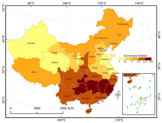 For the low-level EI rating factors, Anhui, Henan, Hebei, and Gansu belong to this category. The echelons of these provinces have lagged behind the national average. The ecosystems’ efficiency rating shows the viability of ecosystems in terms of the ability to “digest” anthropogenic impacts on the environment.
