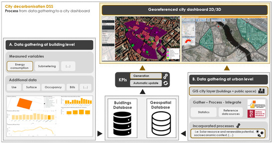 Along with this, an urban decarbonisation tool should exploit real data from smart devices, which, combined with georeferenced information of the sources, loads and decarbonisation targets, and additional data sources should be processed for an integrated and georeferenced urban energy analysis, enriching an assessed decision-making.