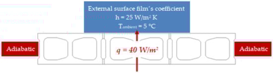 - Sun, J.; Fang, L. Numerical simulation of concrete hollow bricks by the finite volume method. Int. J. Heat Mass Transf. 2009, 52, 5598–5607. [Google Scholar] [CrossRef]