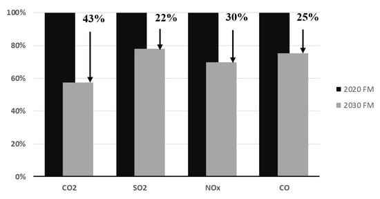 The result comparing the LCI analysis of the considered fuel mixes is presented in Figure 12. As observed, a 30% average reduction was recorded across emissions, with CO2 recording the most decrease of 43% and SO2 with the least (22%). This result, therefore, signifies the influence of the choice of the electricity mix in quantifying the level of environmental emissions as it concerns reducing the ecological impact of the ECC systems’ operation phase.