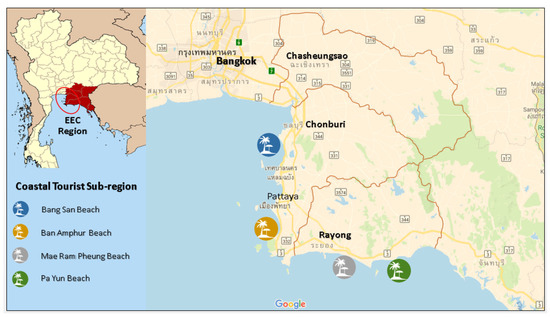- Ministry of Tourism and Sport, Tourism Statistic, Domestic Tourism Statistic Q1-Q4 Classified by Region and Provinces, Eastern. 2018. Available online: https://www.mots.go.th/more_news_new.php?cid=531 (accessed on 10 July 2019).