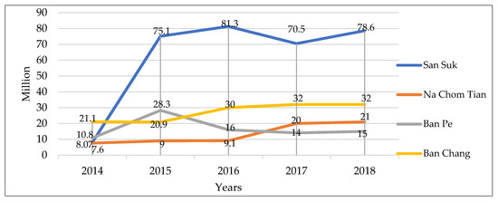 - San Suk Municipality. 2017 Annual Budget Ordinance Report; San Suk Municipality: Chonburi, Thailand, 2018; p. 8.