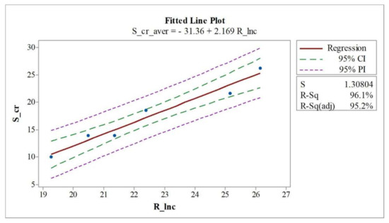 Fitted line plot of average S_cr depending on the factors R_lnc.