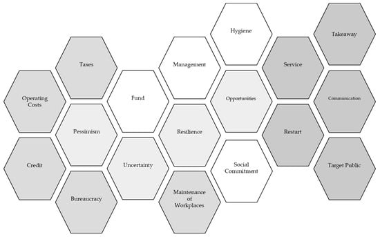 This analysis detected not only the entrepreneurs’ perception of the ability to withstand such a shock but also their capacity to recover, which is one of the definitions of resilience [55]. This concern with economic survival in the post-pandemic period has already been revealed in the literature on crisis management in small businesses like restaurants [56,57].