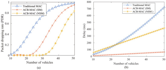 In the IEEE 802.11 and the cluster-based system, Clear to Send (CTS) transmission from each of the member node is required after each broadcast. This is one of the main reason for packet drooping and, therefore, throughput reduction. Accordingly, the above-mentioned methods are not free from these problems. However, for safety message transmission, it is required to maintain the SDR of 100 ms, which did not satisfy the above mentioned papers. However, some of them (for example, [9,12,13,14]) only provide solutions for emergency message transmission and others do not differentiate between messages, which reduces the importance of the emergency messages.