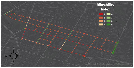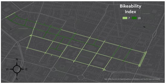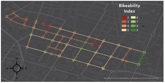 - Gholamialam, A.; Matisziw, T.C. Modeling bikeability of urban systems. Geogr. Anal. 2019, 51, 73–89. [Google Scholar] [CrossRef]