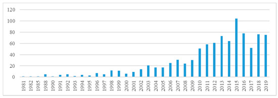 We collected a comprehensive list of publications about the family business that were published between 1981 and 2019. In order to obtain a more comprehensive set of articles about firms with family governance, we adopted a relatively conservative approach by choosing those with and at least one family involvement-related keyword and at least one corporate governance-related keyword in the publication’s title, abstract, or list of keywords [45]. Although existing reviews tend to preselect journals to examine [24,28,29,39,41,46], our analysis does not limit publication outlets because the topic of family governance by nature is an interdisciplinary field of inquiry. As such, research on family governance is largely dispersed across various academic disciplines.