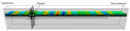 Using the numerical method and baseline setup described in Section 3 and Section 4, CFD simulations were performed both with and without the floater. Each simulation was run for (666.4-second physical time at full scale), and a time window of length at the very end of the simulation was used for data processing.