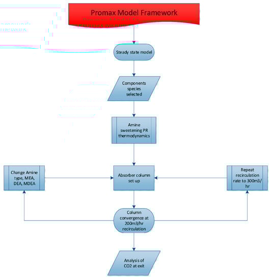 This section highlights the framework involves in specifying the variables for solving absorber column using Promax, which was developed using a typical composition of the Flue gas from gas-powered power plant plants as obtained in Table 7.