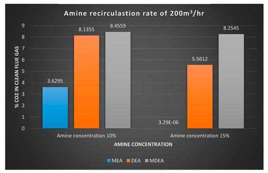 A considerable amount of attention has been focused on our planet due to the conceivable outcomes of climate change, which is a result of the energy generated from fossil fuel emissions and greenhouse gases such as CO2. Therefore, the number of CO2 capture technologies has increased significantly due to their flexibility and design, efficacious cost, and proficient application [1,2]. In addition, flue gas is released into the environment from diverse industries, including power generation, the petrochemical industry, and refinery gases [3]. The definition of flue gas is a blend of combustion products, including carbon dioxide, particulates, water vapor, heavy metals, and acidic gases, generated from indirect (gasification and pyrolysis) intermediate synthesis gas or the oxidation of radial distribution functions (RDF) or generated directly (incineration) [4,5]. In this research, we will examine which of the chemical solvents of monoethanolamine (MEA), diethanolamine (DEA), and methyldiethanolamine (MDEA) are best able to produce good, low-cost outcomes; low amine degradation; and losses to remove or capture CO2 from flue gases. Carbone dioxide must be separated from the gases and other vapors by using absorption technology, which is used to remove carbon dioxide from flue gases by employing liquid solvents (e.g., MEA, MDEA, DEA, etc.) for this purpose. This was conducted in this study by a simulation program (ProMax) and there were two scenarios employed to compare amine solvents from previous study [6]. Currently, chemical solvents using absorption process consider use the technology of the post-combustion CO2 capture technologies, considered one of the best technology for capturing CO2, in addition to pre-combustion capture that has been used to remove CO2 and H2S from natural gas components in a refinery [5,6,7].