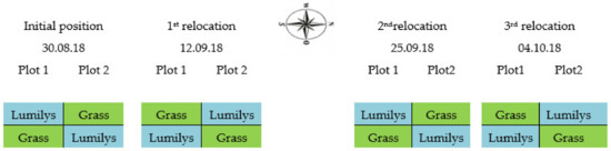 Pictorial representation of moving Lumilys mulch within the same row (“relocation”) in autumn 2018.