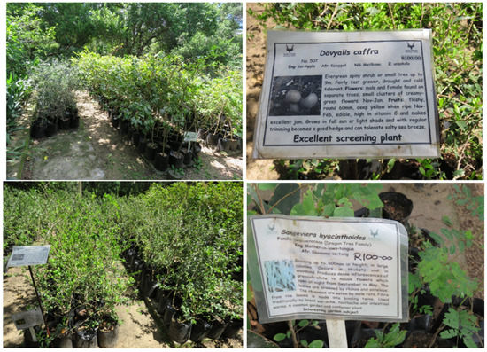 Field observation showed that the nursery (Figure 1) has more than 200 tree species that are crucial to people’s everyday health needs. Traditional medicines have been found to have a considerable role in the achievement of SDG 3 on Good Health [58,59,60]. Traditional medicines can offset some of the challenges faced by rural and poor communities in accessing health in South Africa, which is often beyond the reach of many. The trees provided have other crucial socio-economic purposes beyond just mediation. The nursery often makes donations of indigenous trees to education institutions so as to provide shade. The shade from such trees has a cooling effect on schools and provides shade during the hot summer days, as temperature in the region rises due to global warming. The trees, therefore, act as a form of climate change adaptation.