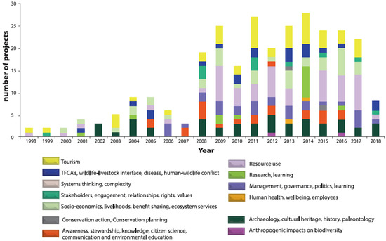 People component research projects registered by SANParks between 1998 and 2018. Source: SANParks p. 33 [61].