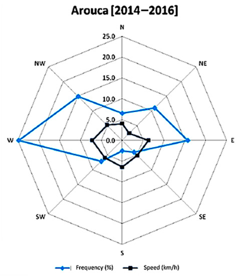 Wind Rose of Arouca. Source of data: IPMA [70].