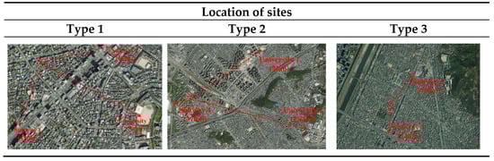 To conduct the feasibility analysis, one site of each type of business model that has development priority was selected. Such sites have a higher developable floor space ratio than others, and therefore, the potential effectiveness of development is higher. Table 3 describes the properties of such sites and Figure 3 shows the location of the sites and infrastructures.
