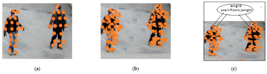 PFs are extracted using the Lucas–Kanade [57] method (as shown in Figure 7) for all particles that are placed on objects detected as humans. The following assumptions were adopted for the application of this technique.