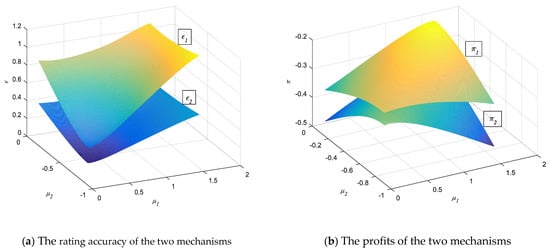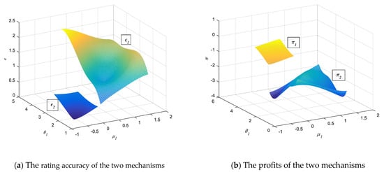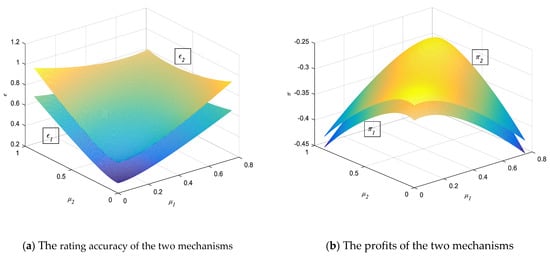 We letandin the two mechanisms, and the equilibrium solutions of rating accuracy are: