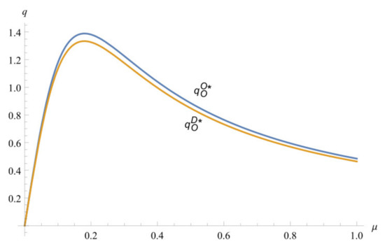 It is apparent that the unreliable supplier’s optimal input quantity is decreasing in . The result is in line with intuition, because when the yield risk of the green product increases, the manufacturer could increase the input quantity to meet rigid market demand.