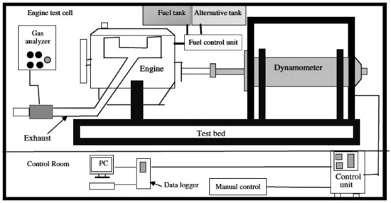 The measurement of the emissions of CO, HC, and NOx from the engine was performed employing the exhaust gas analyzer (model is MAHA MGT5, made by German company MAHA). The test set up is schematically shown in Figure 1.