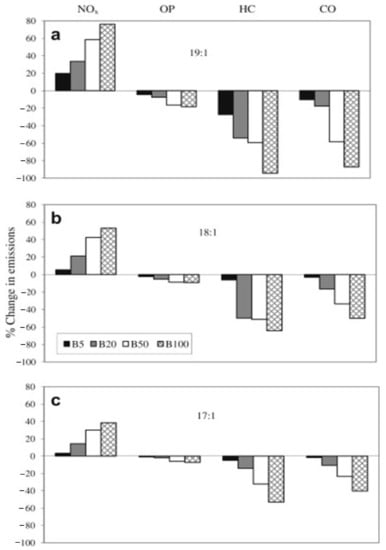 - Hoekman, S.K.; Robbins, C. Review of the effects of biodiesel on NOx emissions. Fuel Process. Technol. 2012, 96, 237–249. [Google Scholar] [CrossRef]