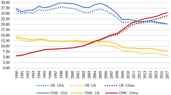 An Approximation to the Environmental Impact of Economic Growth Using the Material Flow Analysis: Differences between Production and Consumption Methods, Applied to China, United Kingdom and USA (1990–2017)