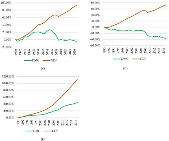 | Country | Year | GDP (USD 2010) | DE (Tonnes) | DMC (Tonnes) | Imports (Tonnes) | Exports (Tonnes) | Decoupling Ratio |