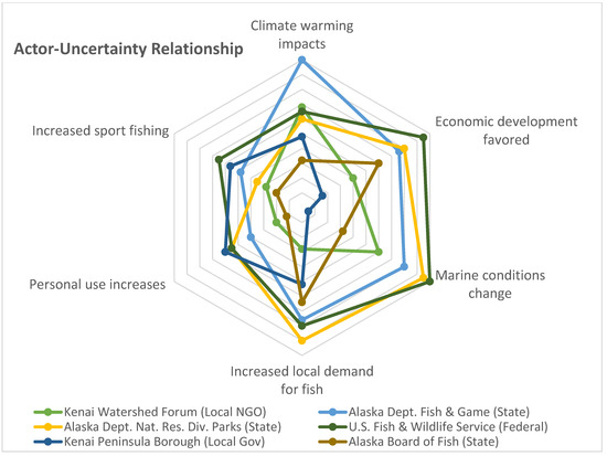 - Krupa, M.B. Who’s Who in T=the Kenai River Fishery SES: A Streamlined Method for Stakeholder Identification and Investment Analysis. Mar. Policy 2016, 71, 194–200. [Google Scholar] [CrossRef]