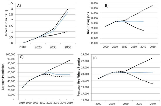 | Scenario | Climate Change | Economic Development | Marine Conditions | Local Demand | Personal Use | Sport Fishing |