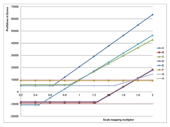 - It was calculated how the parameters of the economic criterion would change if we apply different scale mapping multipliers.