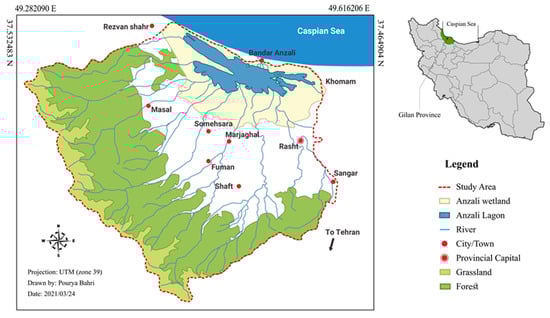 Large wetlands cover 1.7% (~2.8 million hectares) of Iran, half of which are occupied by 24 wetlands designated as internationally important (Ramsar wetlands) out of 2290 worldwide (Ramsar, Iran, 1971). About one-third of these 24 wetlands are under pressure or in a critical condition [1]. For example, as an “international aquatic ecosystem”, the Anzali wetland provides a nursery for fish, and a reproduction and wintering habitat for waterbirds from different parts of the world [2]. Of 145 species of migratory birds in Iran, 77 are found in the Anzali wetland [3]. Due to its outlet connection with the Caspian Sea, many fish species migrate to the wetland, while 39 of 49 wetland fish species are residential [3]. A variety of mammals are also found in the wetland, of which Felis chaus (jungle cat), Sus scrofa (wild boar), and Lutra lutra (common otter) are the major ones [4].