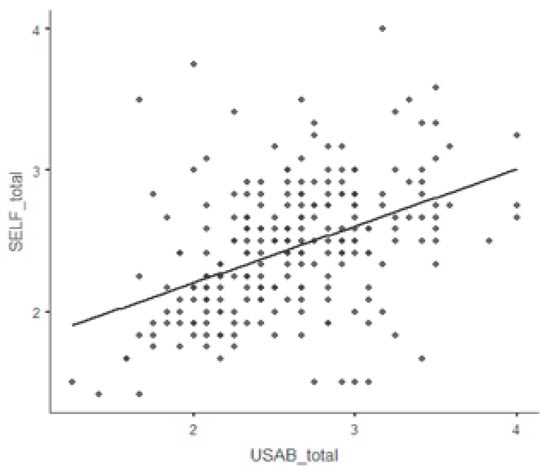 Moreover, the correlation analysis has established a positive relationship (Table 3) between the level of competences subjectively assessed by employees and the actual level of competence used in the given job position. The strongest degree of interdependence has been found again for the group of professional competences Project (r = 0.617). Figure 3 illustrates the positive interdependence between variables (r = 0.443). The null hypothesis H0–4 on the absence of correlation is rejected at the significance level of 5%.