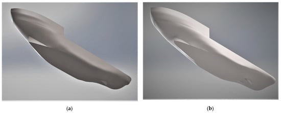 Visualizations of the optimal hulls developed by the model for the intermediate Case 4 (a) and Case 6 (b).