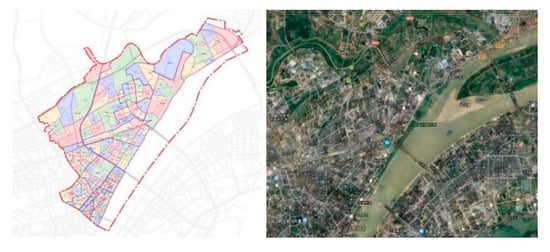 The study district is one of the seven main districts of Wuhan city, located on the north bank of the Changjiang River. It has a wide variety of land types, including the downtown area with high urbanization and building density, a developing area, as well as some agricultural land and forest. Wuhan is the economic and geographical center of central China, so it is a good representative Chinese city, with an area of 70.25 km2, 137 communities, and 7 villages (Figure 2).